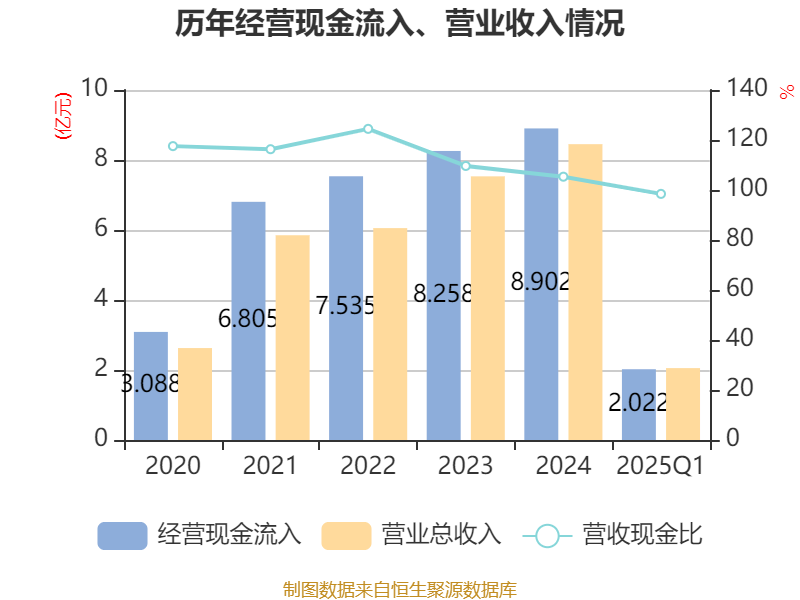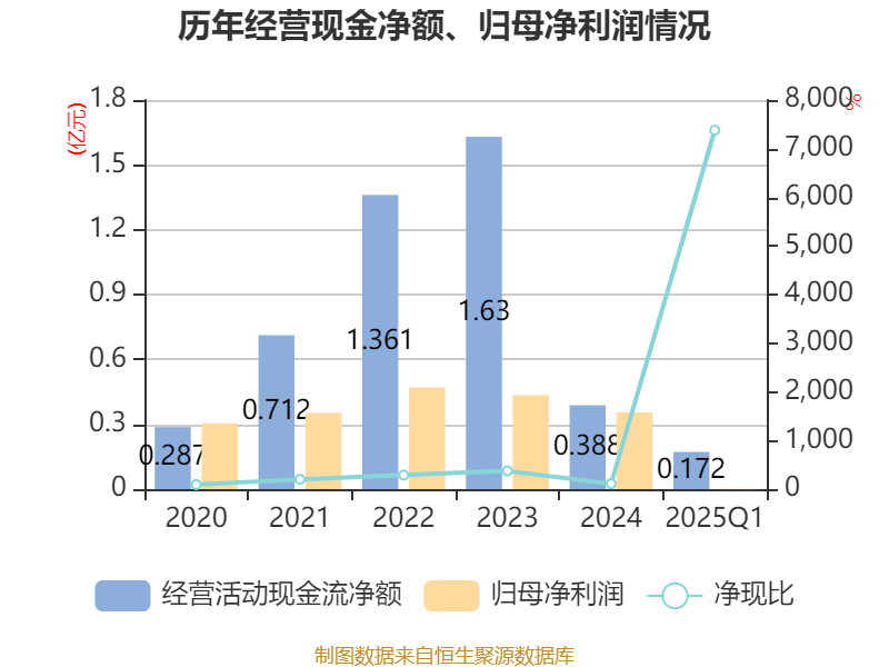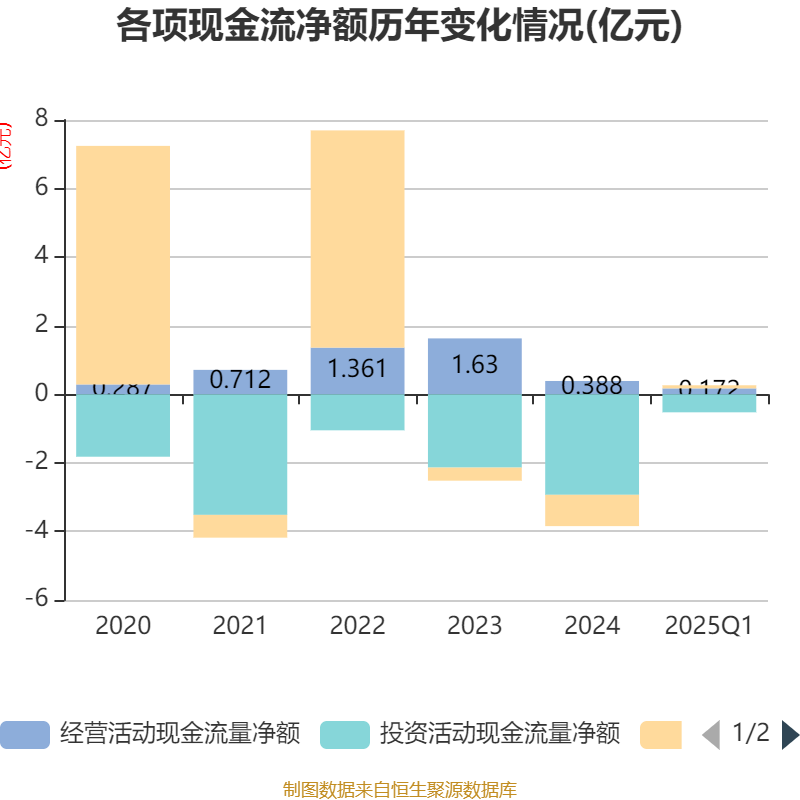 截至2025年一季度末,公司经营活动现金流净额为1722.78万元,同比增加3947.95万元;筹资活动现金流净额912.9万元,同比减少482.14万元;投资活动现金流净额-5259.24万元鼎牛配资,上年同期为-9800.33万元。