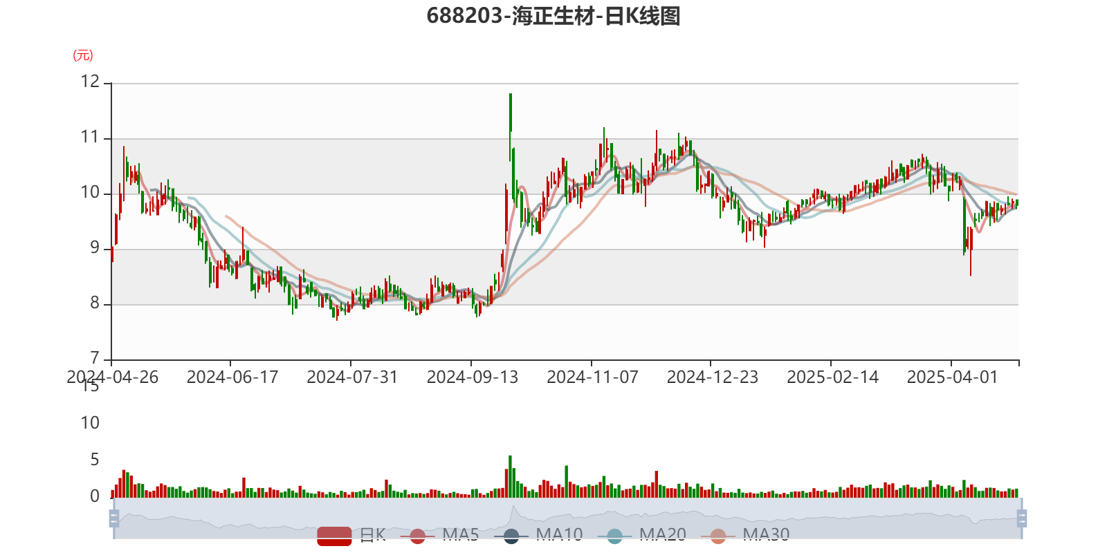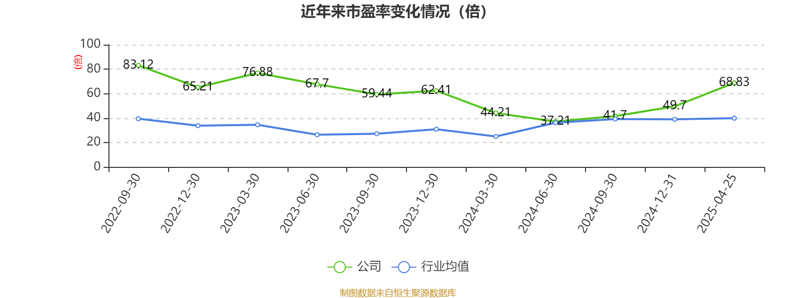 以4月25日收盘价计算,海正生材目前市盈率(TTM)约为68.83倍,市净率(LF)约1.33倍,市销率(TTM)约2.31倍。