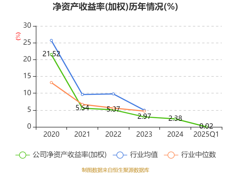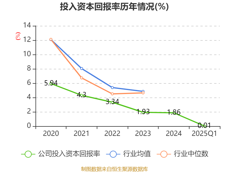 盈利能力方面, 2025年一季度公司加权平均净资产收益率为0.02%,同比下降0.44个百分点。公司2025年第一季度投入资本回报率为0.01%,较上年同期下降0.28个百分点。
