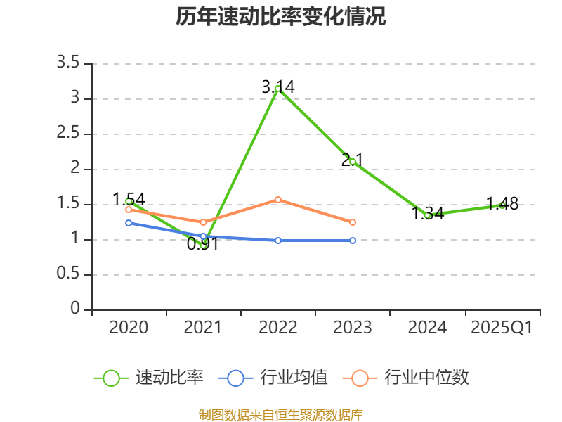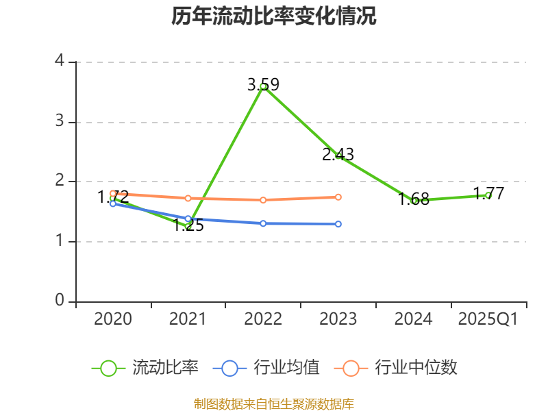 2025年第一季度,公司流动比率为1.77,速动比率为1.48。