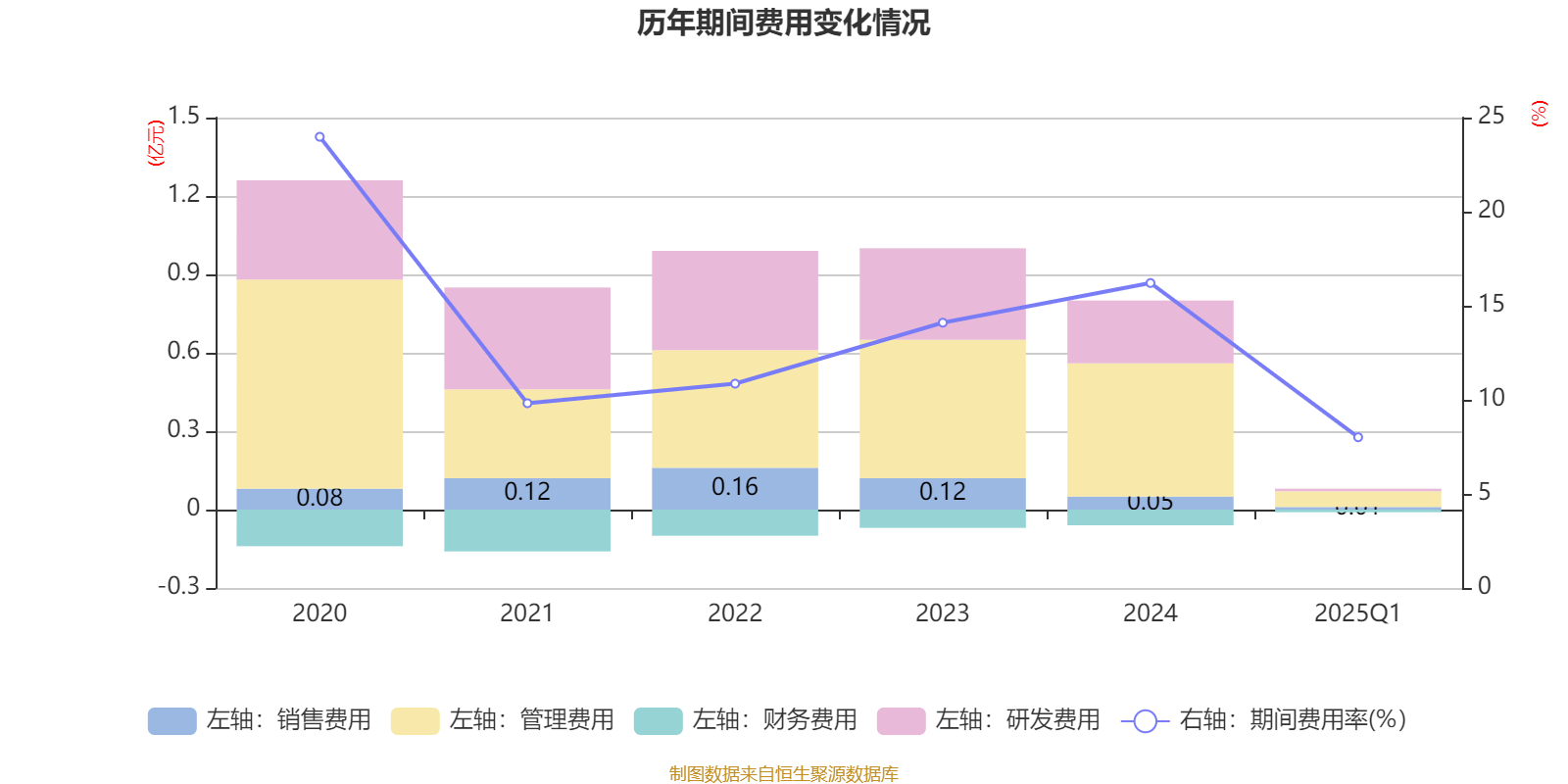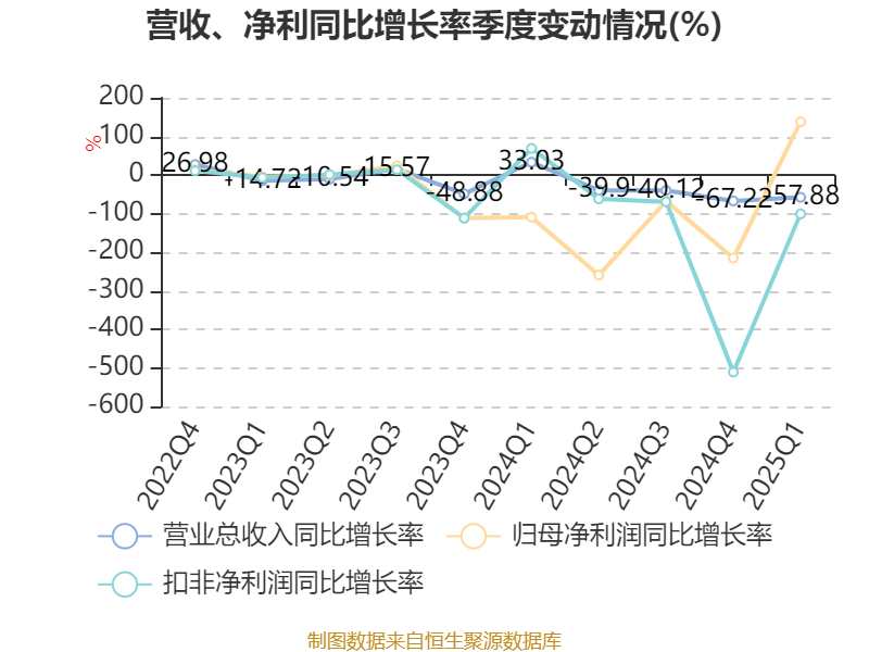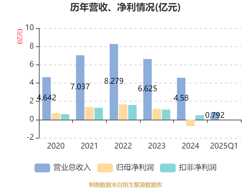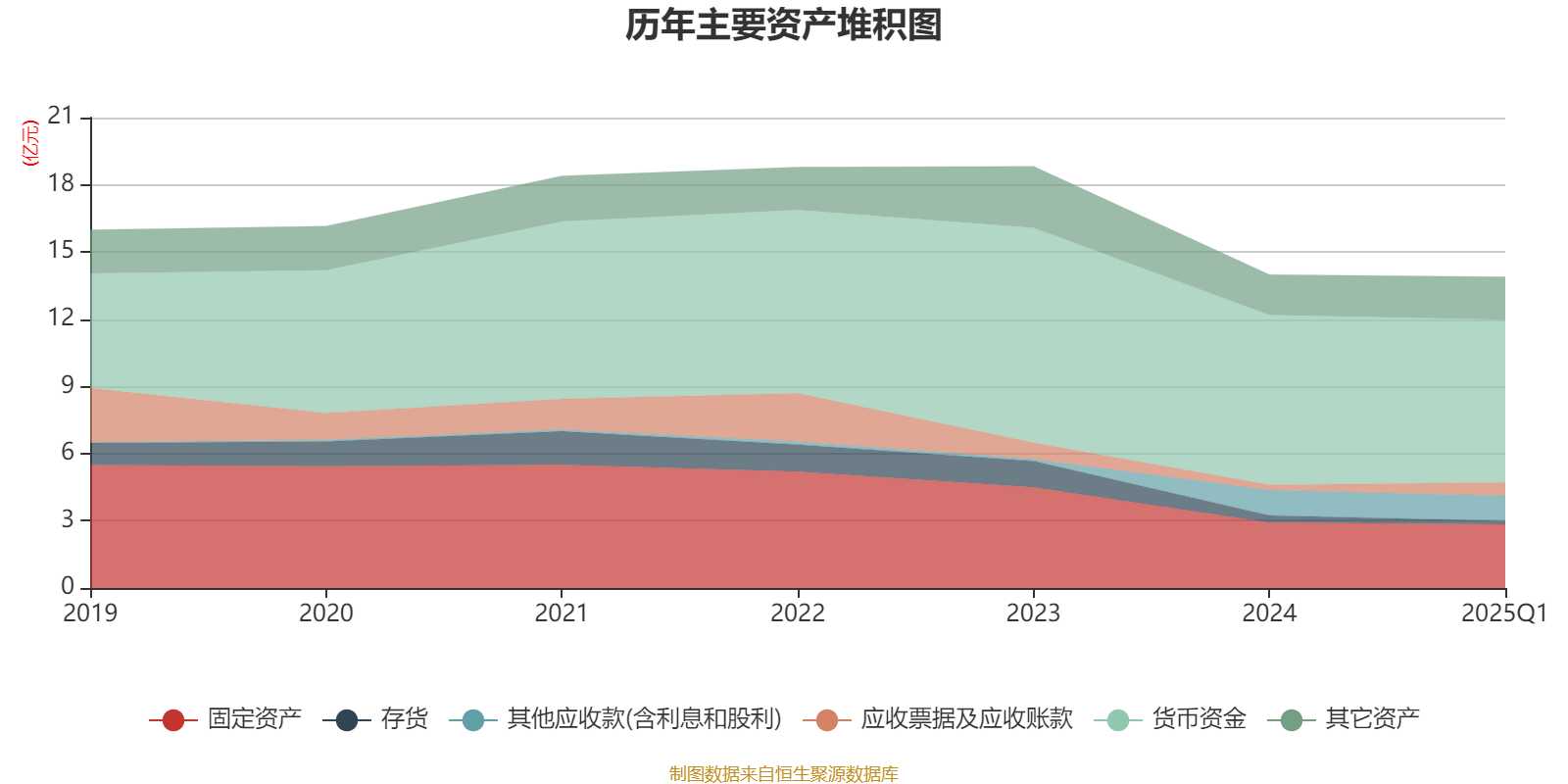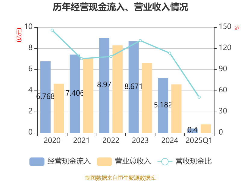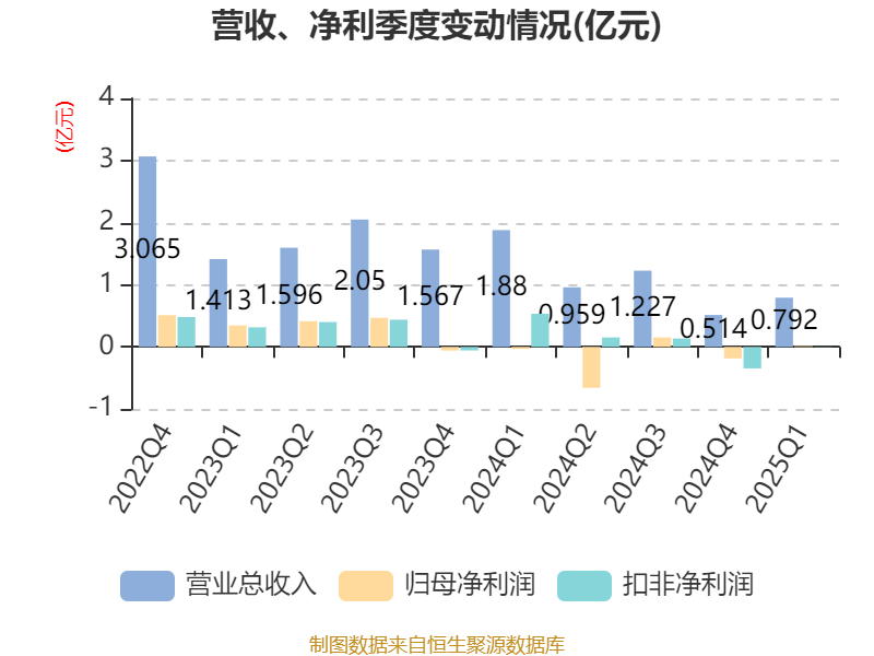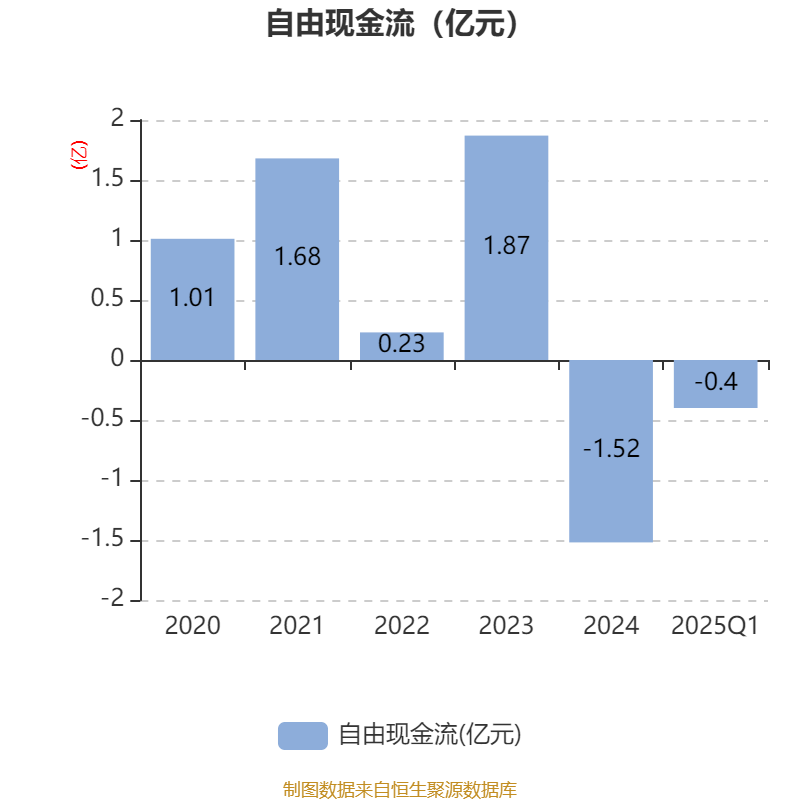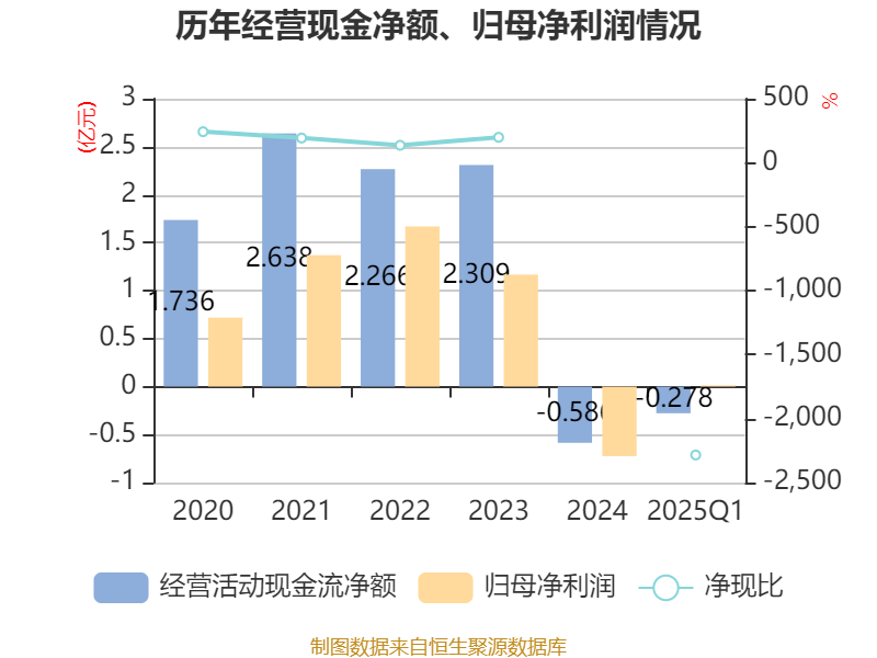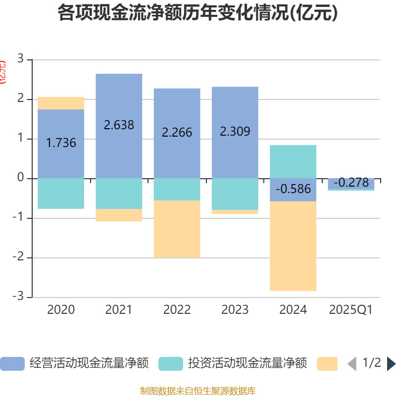 截至2025年一季度末,公司经营活动现金流净额为-2781.93万元,同比减少3391.8万元;筹资活动现金流净额0元,同比增加4282.94万元;投资活动现金流净额-376.35万元,上年同期为8888.76万元。