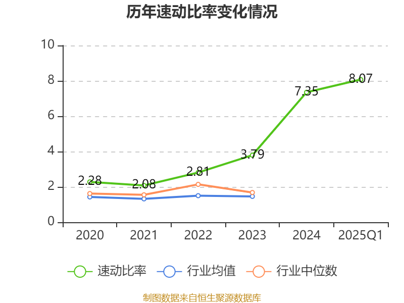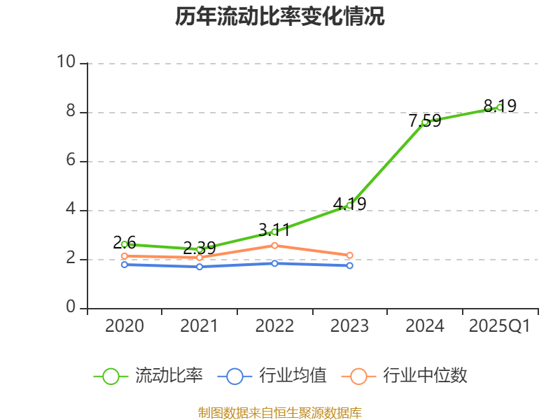 2025年第一季度,公司流动比率为8.19,速动比率为8.07。