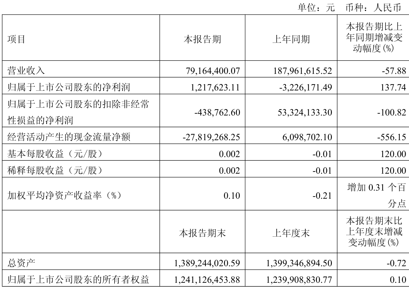 中证智能财讯集友股份(603429)4月26日披露2025年第一季度报告。公司实现营业总收入7916.44万元,同比下降57.88%;归母净利润121.76万元,同比扭亏;扣非净利润亏损43.88万元,上年同期盈利5332.41万元;经营活动产生的现金流量净额为-2781.93万元,上年同期为609.87万元;报告期内,集友股份基本每股收益为0.002元,加权平均净资产收益率为0.10%。